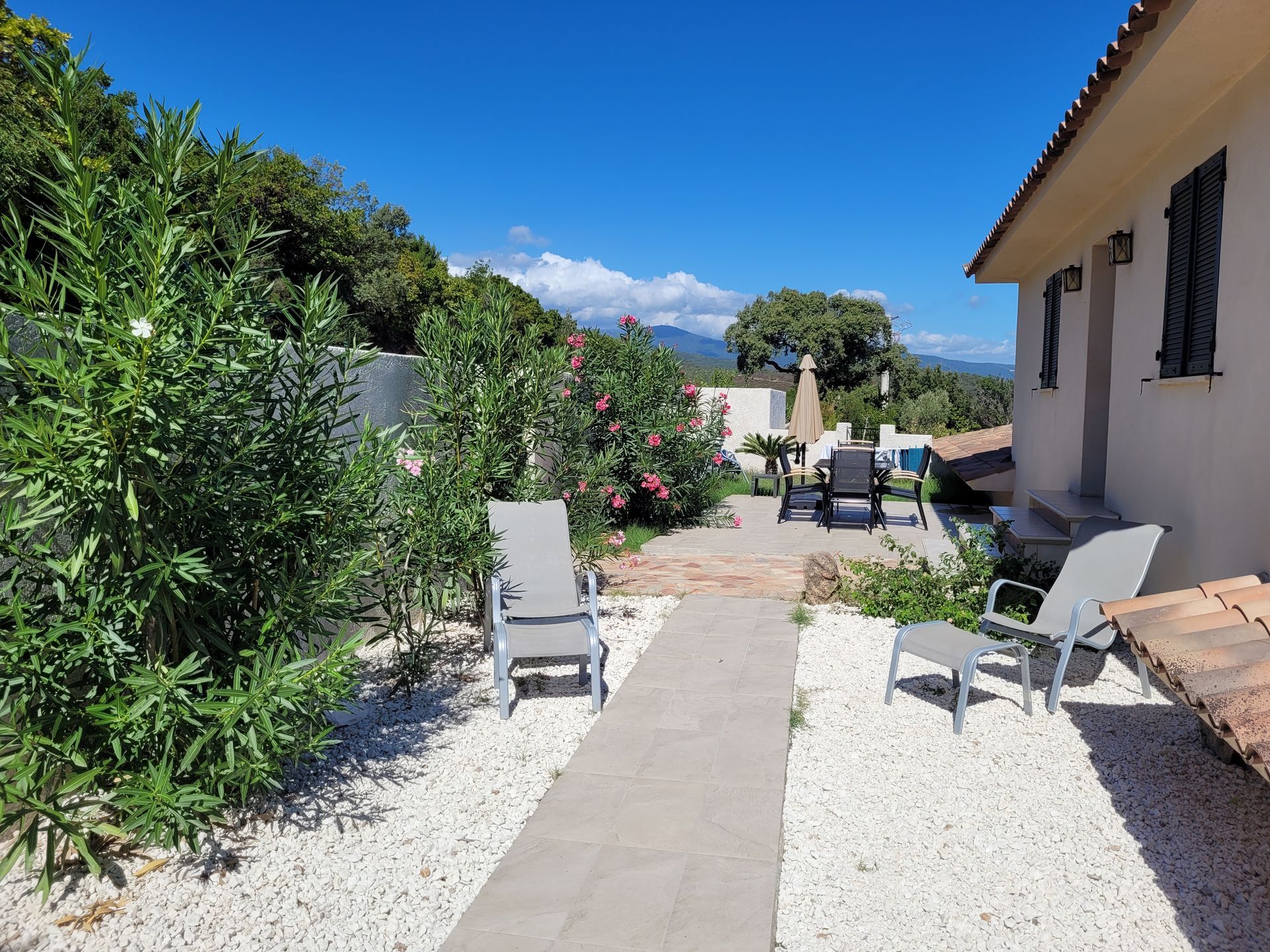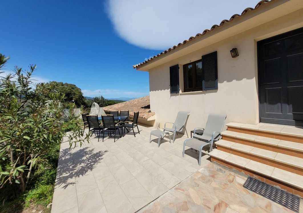 Vue exceptionnelle sur la mer, jardin clos, terrasse solarium équipée d'une piscine, en corse du sud